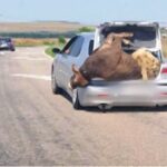 Szokatlan szállítmánnyal indult útnak egy személygépkocsi vezetője kedden a Ploieşti-et Târgoviştéval és Găești városával összekötő 72-es számú országúton: egy élő tehenet és birkát tuszkolt be a csomagtartóba, így szállította őket az úton közlekedő többi sofőr megdöbbenésére.