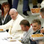 Százötven asztalt állítottak fel a VI. Pálról elnevezett teremben. Százan Ferenc pápával közös asztalnál kaptak helyet. Az ebéd első fogása tészta volt, majd baromfihúsből készült étel és édesség következett. A résztvevők élelmiszercsomagot is kaptak ajándékba. „Ez egy barátok közti ebéd!” – mondta a pápa, amikor helyet foglalt. Hozzátette, hogy a szegények számáról szóló nemzetközi statisztikáknál csak a velük szembeni közöny a rosszabb. A szegényeknek szentelt egyházi világnapot Ferenc pápa három éve vezette be. A világnap a szegények védelmezője, a mai Szombathely egykori területén született Tours-i Szent Márton idén november 11-i ünnepnapját követő vasárnapra esett. Rómából és az olaszországi egyházmegyékből érkeztek a meghívottak, akiket plébániáik papjai és a rászorulókat segítő szervezetek önkéntesei kísértek a Vatikánba. Ferenc pápa homíliájában kijelentette, hogy korunk rohanó és mindent azonnal megkapni akaró világában az igazi értéket a szegények képviselik, mivel ők „nem az egoista én nyelvét beszélik”. Amikor a szegények az ajtónkon kopogtatnak, ne „zavart” érezzünk, hanem használjuk ki „segélykiáltásukat, hogy kilépjünk saját énünk uralta világunkból” – hangoztatta az egyházfő. Úgy vélekedett, a szegényektől lehet megtanulni, mi tartós és mi számít mulandónak az életünkben. Beszédében arra figyelmeztetett, hogy nem elegendő a magunkra ragasztott keresztény vagy katolikus „címke”: „tegyük fel magunknak a kérdést: segítünk-e valakit, akitől majd ezt visszakapjuk, nekem kereszténynek, van-e barátom a szegények között?” Ferenc pápa pénteken új éjjel-nappal nyitva tartó menhelyet avatott fel a Szent Péter térrel szomszédos, vatikáni tulajdonban levő Migliori-palotában. A négy emeletes épület konyháján napi több mint 250 adag meleg ételt készítenek. A pápa ellátogatott a Szent Péter tér oszlopcsarnoka mellett 2018 óta működő orvosi rendelőbe is, ahol eddig több mint 3 ezer rászorulónak tudtak ingyenes segítséget nyújtani. A Caritas katolikus szervezetnek a világnapra közölt adatai szerint Olaszországban több mint 5 millióan számítanak szegénynek, ami a lakosság 8,4 százalékát jelenti. A rászorulók 34 százaléka Olaszország déli térségeiben él. – maszol.ro