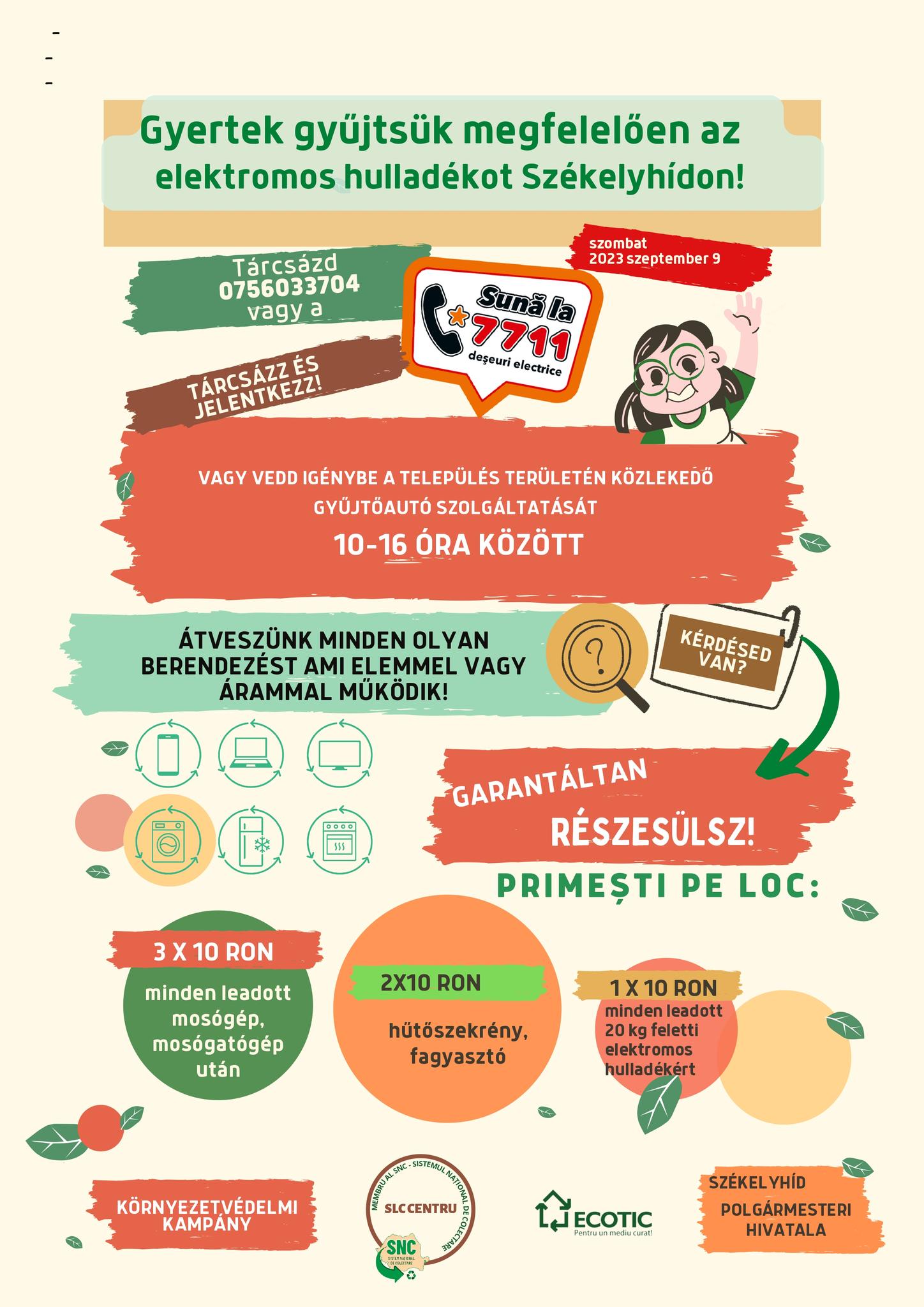 Szeptember 9-én, szombaton lehetősége van megszabadítani háztartását az elektromos és elektronikai hulladékoktól. Hívja a 0756033704-es telefonszámot és vegye igénybe a város területén 10-16 óra között közlekedő gyűjtőkocsi szolgáltatását. A Polgármesteri Hivatal közremúködésével a SLC CENTRU és ECOTIC kampánya a tisztább környezetért.