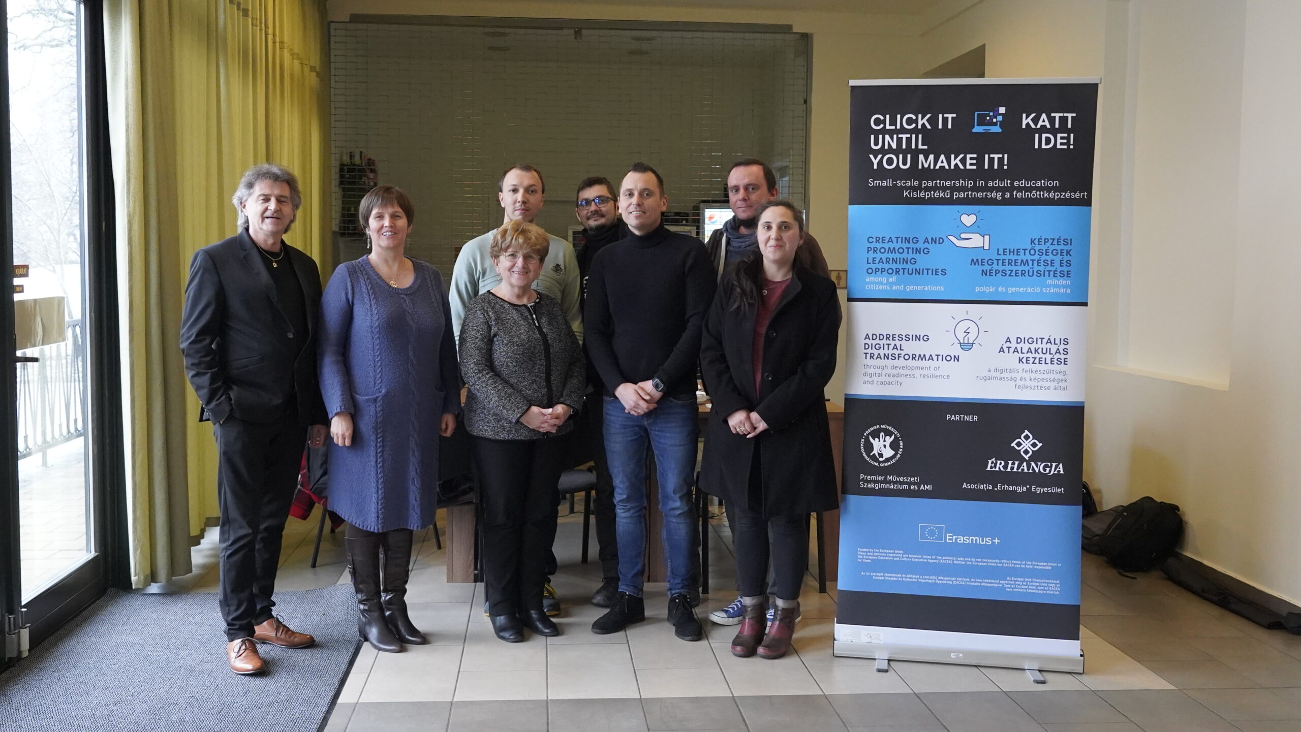 Szakmai találkozón vettek részt az Ér Hangja Egyesület tagjai január harmadik hétvégéjén a magyarországi Gyulán, ahol a Click it until you make it! (Kattints, amíg megcsinálod) elnevezésű nyertes Erasmus+ projektjük részleteit egyeztették a békéscsabai Premier Művészeti Szakgimnázium és Alapfokú Művészeti Iskola képviselőivel, akik a projektben partnereik lesznek. A találkozó célja az volt, hogy megtervezzenekegy időseknek szóló, a digitális kompetenciák fejlesztését célzó ingyenes tanfolyamot, és egymás között elosszák a projekt részét képező 20 oktatóvideó elkészítésének munkálatait.
